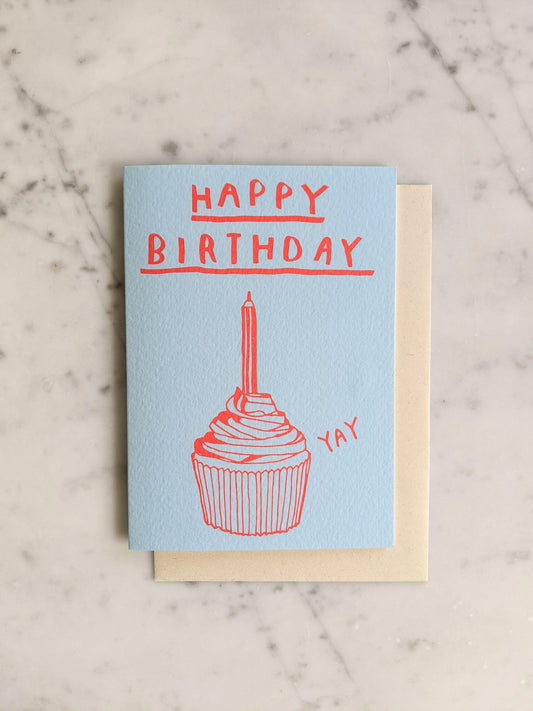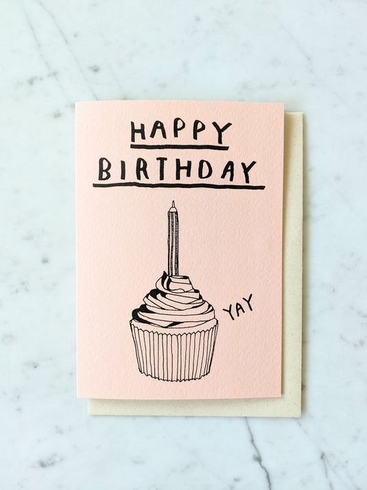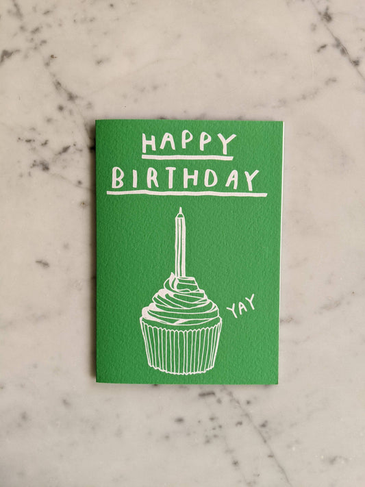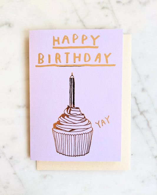 Happy Birthday Cupcake Card - Purple (Shiny Gold Foil)